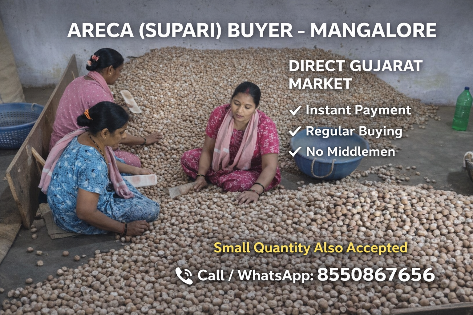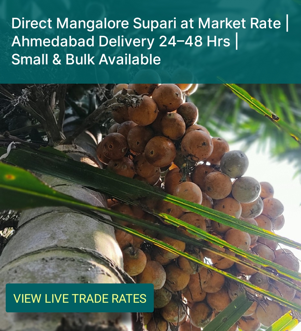 ⚡ Our rate list opens daily 10 AM – 6 PM (Mon–Sat). Send your requirement on WhatsApp 📲 8550867656 — we’ll reply soon. 🌿 Mangalore Areca Nut | Wholesale Supari | Betelnut Supplier in India.