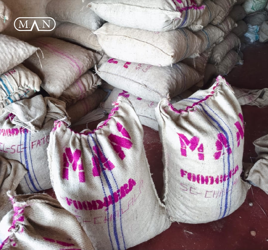 MAN Raas SC is a bulk trade grade Single Choll supari sourced from Dakshina Kannada (Mangalore belt). Supplied in 65kg bags for wholesale traders across Gujarat and India with stable rotation quality.